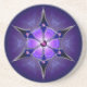 This chilly abstract was created from an Apophysis fractal turned into a six-pointed kaleidoscope. The design is overlaid with a silver-framed snowflake with inlaid deep blue, purple, and lavender set with round soft pink gems and accented with a deep pink jewel in the centre. The whole piece gives the effect of a soft, snowy light shining through a the black and midnight blue of a dark winter night.