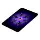 This chilly abstract was created from an Apophysis fractal turned into a six-pointed kaleidoscope. The design is overlaid with a silver-framed snowflake with inlaid deep blue, purple, and lavender set with round soft pink gems and accented with a deep pink jewel in the centre. The whole piece gives the effect of a soft, snowy light shining through a the black and midnight blue of a dark winter night.