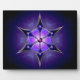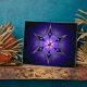 This chilly abstract was created from an Apophysis fractal turned into a six-pointed kaleidoscope. The design is overlaid with a silver-framed snowflake with inlaid deep blue, purple, and lavender set with round soft pink gems and accented with a deep pink jewel in the centre. The whole piece gives the effect of a soft, snowy light shining through a the black and midnight blue of a dark winter night.