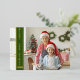 Modern holiday greeting card featuring a full-bleed customisable photo on the front with a red vertical overlay band on the left, highlighting the wording "Merry Christmas" in real gold foil. You can upload three more of your favourite family photos and your personal greeting message on the reverse of the card. You can find more greeting cards for Christmas and New year in my store Bird's Eye.