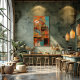 This abstract design in collage highlights a mixture of lines and a central circle in vibrant shades of orange, blue, and brown. Perfect for contemporary art enthusiasts, this poster adds a modern and dynamic touch to any space, ideal for home and office decorations.