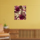 This is a beautiful, elegant poster featuring maroon roses with decorative butterflies and objects in a collage style. This poster would look great in a bedroom, living room, lounge or home office.