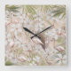 Collage, Digital, Pattern, Pastel, Nature, Leaves, Square Wall Clock