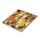 Ceramic tile in a collection of cute cats, in different shades of orange, black, and white, arranged against a warm brown background. Small hearts and floral accents are interspersed throughout, adding a whimsical touch.