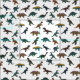 Perfect for crafting gifts for fans of dinosaurs or curtains or home decor items that are perfect for little boys' bedrooms. This fabric features an all over pattern of photos of plastic toy dinosaurs in an assortment of colours set against a white background.