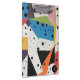 A fun and lively design of coloured paper shapes collage with black dots. Personalise with initials.