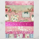 This scrapbook sheet blends nostalgic charm with modern sparkle, featuring a horizontal stack of patchwork‑style patterns that feel lovingly collected over time. Each stripe showcases its own personality—pink chunky glitter textures, softly faded motifs, worn‑in florals, and classic gingham—layered together in a beautifully imperfect collage.