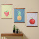 "The collection of fruits" (Strawberry, Pineapple, and a Red Apple) are minimalist watercolor paintings. The colours are pastel and look like a watercolor painting. This print will brighten up any kid's bedroom or playroom.