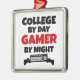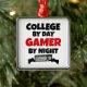 This text design features the trendy phrase "College by Day Gamer by Night" and is perfect for anyone who attends college by day but also loves playing computer games or video games by night.