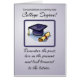 Earning a College Degree is a very special time. This blue grey card shows a graduation cap and diploma. An inspirational message fills the front. Perfect card to congratulate either man or woman on their college graduation.