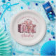 Cute college trunk party/dorm shower paper plates for girls with pink vintage suitcases on a soft pink polka dot background. Text says, "Congratulations". Personalise by adding the name of your graduate on her way to college. Perfect for the graduation or trunk party. Contact me for assistance with your customisations or to request additional matching or coordinating Zazzle products for your event.