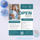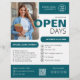 Invite future students and families to explore your campus with this professionally designed Open Day flyer. Perfect for colleges, universities, or educational institutions, this template highlights key event details like date, time, location, and featured activities—such as campus tours, info sessions, and meet-and-greets with faculty. With bold headings, modern icons, and a clear call to action, it’s an ideal way to promote your admissions event, both online and in print. Easily customisable to fit your school's branding and event schedule.