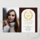 Classy and elegant with the "wow" factor of real gold foil with a dark maroon background on front and a dramatic dark maroon and gold-toned (not foil) marble look background on back, this college or university graduation announcement features your photo on left and a graduation cap surrounded by a laurel wreath on right in real foil detailing. Your class year and name are also accented in real foil, along with a highlight foil line surrounding the white arched background.