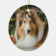 This adorable Christmas ornament, featuring a Rough Coat Collie lying under a Christmas tree, is a wonderful gift for any Collie lover.