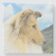 Collie in Mountains (Rough) Painting - Dog Art Stone Coaster