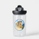 The bottle looks even better in real life. The ice cubes I put in lasts all day! I have my bottle with me all the time. It's summer and having something cold to drink feels amazing. With this bottle I always have something super cold. I have only tried the hot drink once and it lasted a long time as well. The color blue is a navy blue and the white printed on it is vibrant. It printed perfectly. I love my personalized smile water bottle.