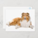 Brighten someone's day with a card! This charming postcard features a portrait of a happy tan and white Collie puppy dog highlighted against a creamy white background. She is ready to help you send greetings to family, friends and customers.