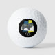 Rough Collie cute dog silhouette grid abstract pattern yellow and blue with tricolour background in a black circle. Personalize with your three initials in white under the dog shape. Perfect for the dog lover in your life or the dad who loves golfing, these golf balls are the perfect way to show off your passion.
