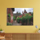 Canvas landscape print of a footpath leading into Collonges-la-Rouge, the red village, with its red houses and red stone castle with towers in the Limousin, at the border with Dordogne region in France.