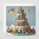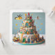 FUN FOR KIDS, COLORFUL BLOCKS TOY THEMED KIDS BIRTHDAY LAYER CAKE ON THE FRONT OF THE CARD. COMPLETELY EDITABLE COPY ON THE BACK.