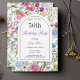 Colourful Wildflowers Arch Frame 50th Birthday with pretty wild country flowers in purple, lavender, green leaves and more, with a brushed script typography on an elegant background an use for any age of girls and women.