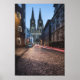 Travel photo of Cologne (Köln) in Germany at night. The photograph shows the Cologne Cathedral and the cobbled stone street "Burgbauer". Photo © Sebastian Worm.