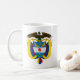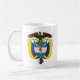 The coat of arms of Colombia contains a shield with numerous symbols. Perched on top of the shield is an Andean Condor holding an olive crown and the condor symbolising freedom. The national motto, Libertad y Orden (Spanish for Liberty and Order), is on a scroll in between the bird and the shield in black font over golden background. The condor is depicted facing front with his wings extended and looking to the right.