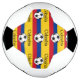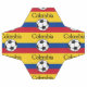 The flag of Colombia, 3 bands, yellow, blue and red. On top of this is an image of a black and white football / soccer ball. The flag is layered which gives this Colombian football supporters design a bright cheerful feel. A fun Colombia football design for kids (and the young at heart).