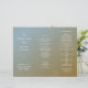 Tri-fold wedding program template in dark blue and brown with white text and leaves. All text is in template form to be replaced with your ceremony order and is an example only. The paper will be folded into thirds after purchase and will open accordion style for guests to read. Reverse will have no printing, colour or images. Shown on the heaviest - linen- paper which may be changed.