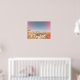 This full-color poster features a monolithic wall of boulders in Joshua Tree National Park. The foreground of this California desert is speckled with green bushes and agave, all accented by pink saturated light flares, creating a beautiful and hip piece of art for any modern home or dorm.