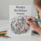 An anime themed girl's birthday card with a word search on the inside, and a coloring page on the front with an illustration of an anime girl holding a cupcake and a cute poem for a pre-teen girl!