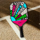 Bring bold personality to the court with this Pickleball Paddle | Color Splash Fanburst design. Featuring a striking fanburst of hand-drawn geometric patterns — including stripes, grids, diamonds, doodles, and playful textures — this paddle design explodes with energy. Bright pink, neon green, turquoise, and crisp black-and-white accents give the set a fun, fresh, modern look that stands out instantly.