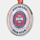 Show your state pride this holiday season with this unique Christmas ornament dedicated to Colorado, the 38th state. It has red, white, and blue patriotic colours with a circular typography design on a white background. The text includes facts about the state, such as its name, capital, state abbreviation, region, time zone, geographic coordinates, the year of its statehood, and its resident's name. It's a great gift for those who wish to celebrate their state or for those who are feeling nostalgic about their home state.