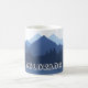 COLORADO Coffee Mug featuring mountain silhouettes in shades of blue, with customisable text. For no text, delete sample text and leave blank.
