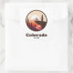 A hiker stands tall on a rocky outcrop, her silhouette sharp against a glowing sky of amber, rose, and soft violet—the golden hour light casting long, warm shadows. She’s rugged, wearing a weathered backpack and boots dusted with trail dirt, standing strong and still, taking in the vastness before her.