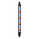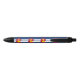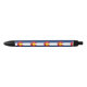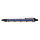 The flag of the state of Colorado consists of three horizontal stripes of equal width; the top and bottom stripes are blue, and the middle stripe white. On top of these stripes sits a circular red "C", filled with a golden disc. The red "C" filled with golden disc also represents colours of Spanish flag. The blue is meant to represent the skies, the gold stands for the gold rush in the late 1800s, the white represents the snowcapped mountains, and the red represents the ruddy coloured earth.