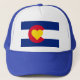 Show your state pride and sport this Colorado heart flag Trucker hat. Different colours and customisation available.