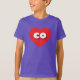 This t-shirt features a vibrant red heart containing the bold, rounded lower case letters co, a playful abbreviation for Colorado, the centennial state.