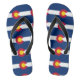 These flip flops feature the distinctive and colourful red, white, blue and gold Colorado State Flag, with the yellow sun image encircled by the red block letter C on a blue and white striped background. The image is tiled onto the surface to make a bright and colourful pattern.