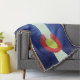 A quality printed throw has its advantages. This is a much finer weave throw than its loopier cousins, and though lighter, it is worth the investment for custom room accessorizing. The back is much prettier than the typical brown, and the fringe on the long sides very vivid, the selvage nicely done. Before photographing, I washed the throw in cold water, delicate, with a thicker woven throw the same size. On tumble dry low, this throw was dry in half the time as the other. This is a very practical quality if you use throws for furniture covers or to wrap up in frequently. The sleekness of the fabric makes it a great layer for accenting or protecting without the feeling of sitting on too much stuff. Perfect for napping or when you feel a light chill coming on. The color printing is beautiful and on this fabric, matched the design and color of my Photoshop image. This is an advantage for blending room fabrics and colors. The fringe on the short sides prints the colors from the design image and therefore varies from the side fringe. I streaked a white fractal line through the plaid pattern to give the illusion of weaving. This printed as crisp as an illusory thread, and put some white in the short side fringe, showing another advantage of print vs loomed- for artistic purposes, line lines, detail, and color integrity can be planned and preserved. My loomed throws have color limitations and more of a needlepoint texture. Print throws reproduce an exact image. The throw felt a little stiff straight out of the package, but this went away in the first delicate wash. Of course I searched the wash water for ink or bleeding and there was none.