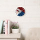 Colorblock Blooms | Boho Burgundy and Navy Pattern Round Clock