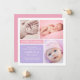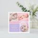 Introduce your new baby girl to family and friends in style with this modern and chic colour-block birth announcement design. The square card includes three placements to showcase your favourite newborn photos, a lavender purple, pink, and white colour scheme, and a pop of pink colour on the back side of the card.