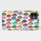 This phone case has a mid-century modern design of sets of three leaves in fading shades of retro colors.