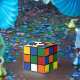 Carton with colorful squares. dice, party gag, decorative items for all fun occasions.