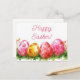 Colored watercolor postcard with Easter eggs