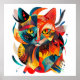 A cat illustrated in geometric shapes and vibrant colors that bring a joyful energy. This artistic piece is perfect for lovers of cats and modern design. 🐱 🌟