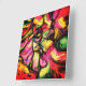 Abstract art, created using a colorful selection of fruit inspired colors, from apple greens to mellow lemons and watermelon tones, Creating a colorful arrangement with black detailing using a mixture of liquid art and stain glass affect. A beautiful design to compliment your decor or add a splash of color to any room