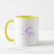This colorful abstract neon splash coffee mug features a vibrant modern art design on a dark background.