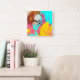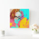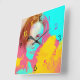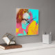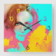 - Beautiful Abstract Pop art woman, Square Clock. Colorful atmosphere of pink, blue & yellow.