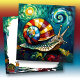 A blank card with a vibrantly colorful snail in a pretty oil impasto style. Just a blank card to write a note to yourself or to someone else on with a happy snail illustration.